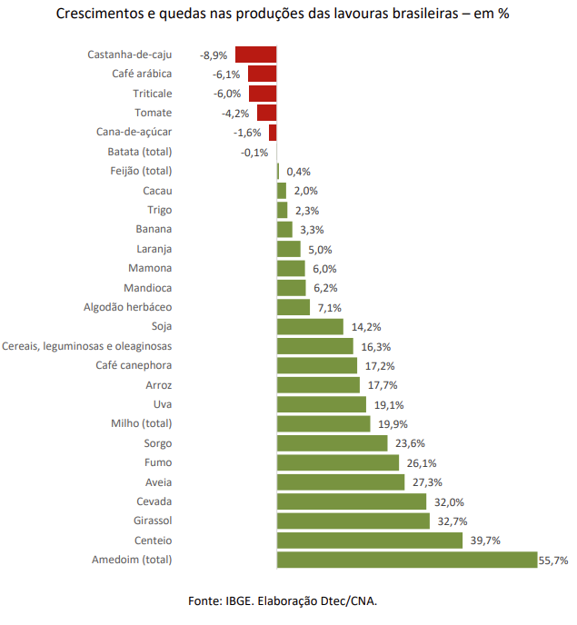 O destaque ficou para o setor agrícola, que cresceu 12,2% em relação ao trimestre anterior; indústria registrou leve queda de 0,1%.