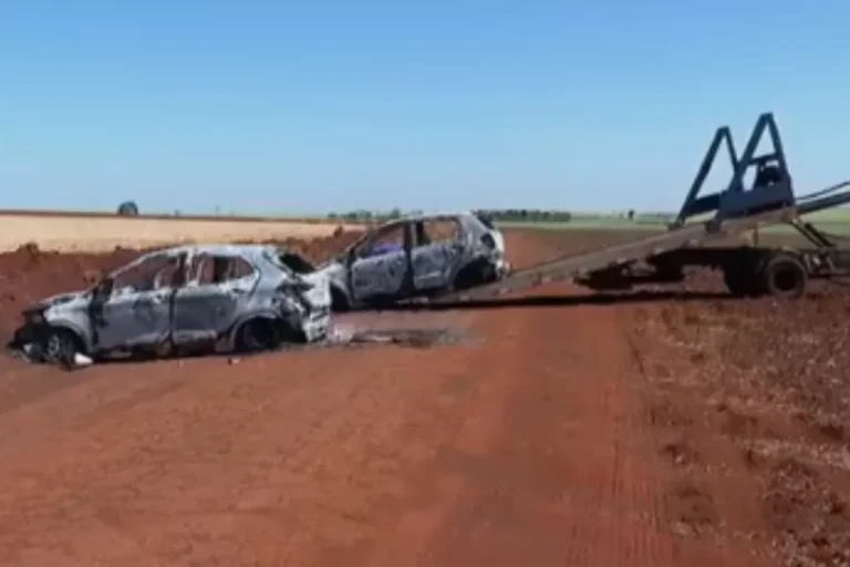 Dois carros utilizados na fuga da quadrilha suspeita de fazer um arrastão em um condomínio residencial de luxo, em Ribeirão Preto, no